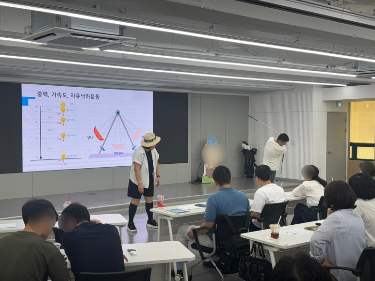 2025년 8월 2일 토요일 아침, 제주 모처의 대강당에서는 조용하지만 열기 가득한 3시간의 원데이 클래스가 펼쳐졌습니다. 엄메이징HRD가 기획하고, 윤지선 코치님이 진행한 「골프 비즈니스 매너 – 신사숙녀답게 골프치기」 프로그램입니다. 윤지선 코치님은 골프를 단순한 스포츠가 아닌 ‘배려와 센스, 그리고 관계의 기술’로 풀어내며 비즈니스 현장에서 필요한 ‘신사숙녀의 매너’를 골프와 연결해 전달했습니다. “공을 잘 치는 것도 중요하지만, 공을 대하는 태도, 사람을 대하는 센스가 진짜 실력입니다.” 강의는 이론과 실제가 조화를 이룬 구성으로 진행되었습니다. 스윙의 물리 원리를 시각 자료로 쉽게 설명하고, 참가자의 자세를 직접 교정하며 몰입도 높은 실습도 이뤄졌습니다.